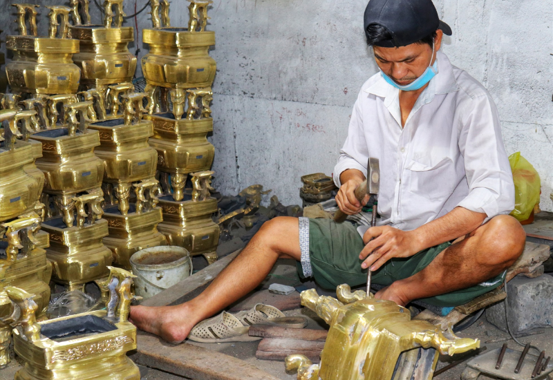 Origins and the story: The craft in An Hoi dates back approximately 200 years to the late 19th century. In the past, Saigon was home to several famous bronze casting villages like Cho Quan and Phu Lam, but they have all faded into oblivion. An Hoi survived through the sheer dedication of its people. During its golden era, the village's products were sold throughout six southern provinces and exported to neighboring countries.