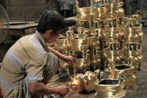 Witnessing the Traditional Casting Process: Visitors to the village can observe the fascinating yet challenging manual process of bronze casting. The production involves multiple meticulous phases, including mixing materials, shaping the pieces, molding, processing, and carving.