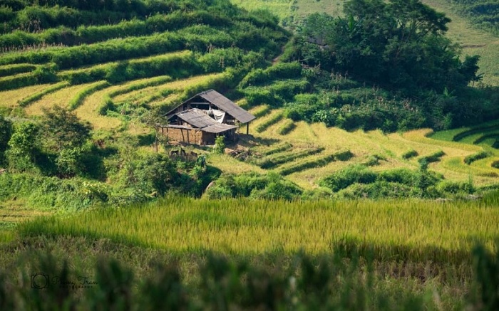The first time you come to Den Sang commune, you will feel the typical scenery of the Northwest region. The picture of majestic mountains, high and wide open in front of you. On the roads into the commune, visitors will encounter many terraced fields running along the roads, winding at the foot of the hill, intertwined with the forest, and nestled under the tall mountains. You can easily see in the distance that the white clouds are floating which adorning the scene of Den Sang becomes more poetic. The tiny wooden house is rustic, simple, surrounded by fields that are sometimes green, sometimes bright yellow,... not only beautiful but also very peaceful.