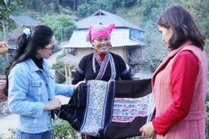 The men’s clothing is simpler with dark indigo clothes, which are split blouses with fabric straps, two pockets on the front, and one pocket on the left chest. The shoulder bag is a very valuable item, both aesthetically and in terms of traditional value for Lu’s men. These shoulder bags come in different sizes and are decorated with floral motifs and cotton buds in vibrant colors. In contrast to the fact that weaving is associated with women, for men, there is carpentry, blacksmithing, and the making of household utensils. These items are well-designed and sophisticated, for instance, baskets, fishing and tools. Women of the Lu ethnic group often dye their teeth black, with some replaced with golden teeth.