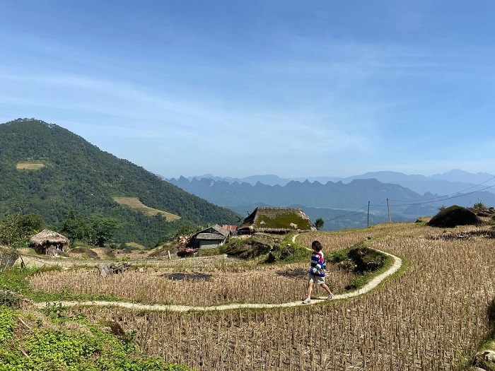 Behind the village is the majestic Tay Con Linh mountain range, which adorns the picture here more magnificently. In particular, this is also the place to plant a lot of terraced fields, the beautiful scenery can be compared with Hoang Su Phi, Mu Cang Chai, ...