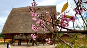 Kon Bring Community Tourism Culture Village is a collection of traditional stilt houses next to the towering Krong roof in the centre of the village. Beneath the smoke, gently drifting through the Mang Den pine forests scented with new resin, Kon Bring Community Tourism Village appears as a magical, sparkling space enveloping the life of the M'Nam people.