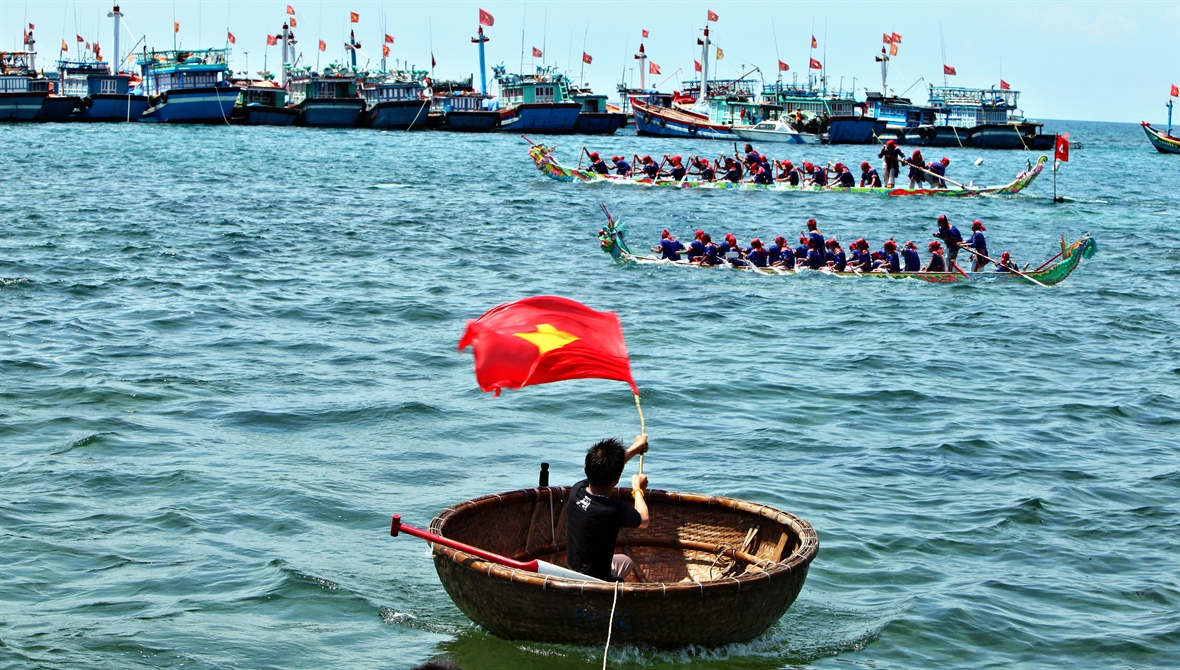 Ly Son Dragon Boat Racing - Four sacred animal boat racing (Dragon-Unicorn-Turtle-Phoenix) on Ly Son Island seas for New Year fishermen blessings.