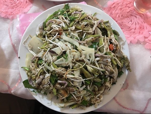 The food of many Lao people is mainly taken from nature such as wild vegetables, and stream fish to process special dishes such as ‘Chẩm chéo”, “cỏi”, “lạp”, “mắm cá”,... When catching a lot of fish, the people often pickle them with salt, make salads, salads, or dishes, bake them with lemongrass leaves, and wrap them in kitchen ash. At the beginning of the new year, there will often be winter-dried fish cooked.