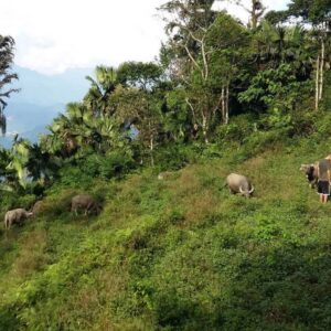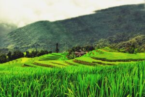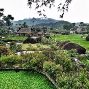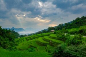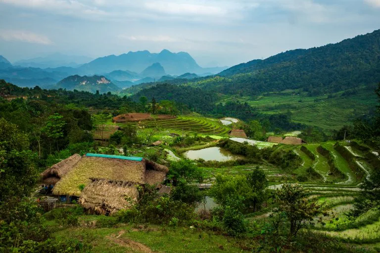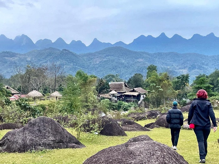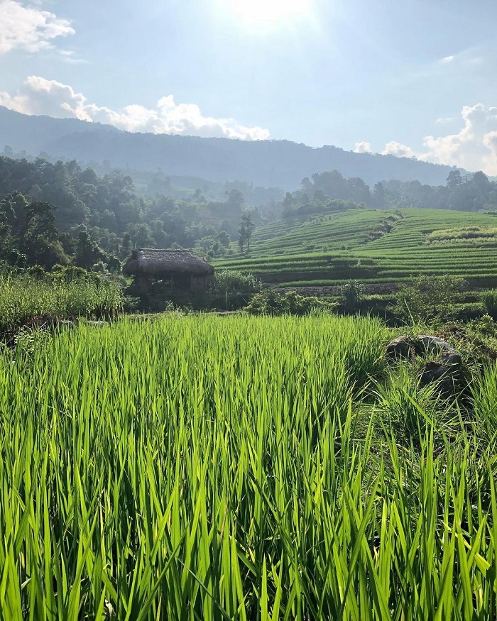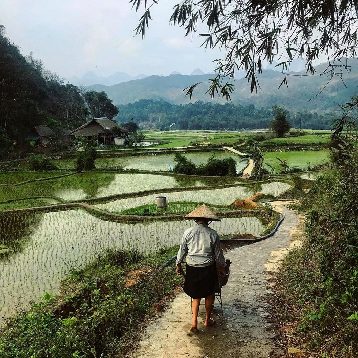 Coming here, you will see the gray houses of the people lying among the green gardens and rice fields. Depending on the season of the year, the picture around the house will be the green of the young seedling, the yellow of the ripe rice, or the colorful umbrellas that sparkle in the sun. In particular, among the rice fields and gardens here, there are many black rocks that make a special mark for Na Thac.