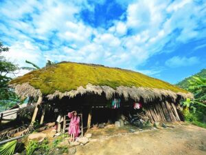 Especially, it is impossible not to mention the beauty of the traditional houses of the people here. The Dao people live in three highland villages of Phuong Do commune, living in stilt houses leaning against the Tay Con Linh mountain range for more than 300 years. The traditional houses of the people here are mainly houses on stilts with palm roofs. There are houses on stilts with thick palm roofs covered with mossy layers of moss formed over time, under the influence of fog all year round. The older the house, the thicker the moss cover, and the greener and more beautiful it is.