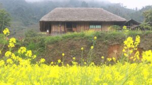 Along with the landscape beauty of the terraced fields, coming to the highland village in the early spring days, besides the pure white of the plum blossom, and the pink color of the peach blossom, it also stands out with the brilliant yellow of the mustard flower.