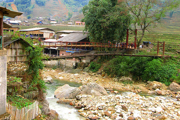 May Bridge and Muong Hoa Stream are the symbol of Ta Van Village. Most of the bridges leading to Ta Van Village have been replaced by cement and iron bridges to ensure safety, but May Bridge (Cloud Bridge) is an exception. May Bridge is made of thin wooden slices and forest ropes, which adorns the pristine appearance of the scenery there. May Bridge however was built a long time ago, and it is not easy to cross the bridge, so you should be careful, especially in the rainy season.