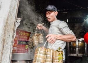 About 50m strait from the village gate is the traditional ancient market which lies in the shade of big trees. According to old villagers, since the main gate of the village was built, the market began. It is held within only two hours in the early morning. Therefore, traders must bring food to the market early to sell to local people, and locals also have to get up early to go to the market to buy food in preparation for their meals.