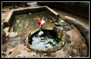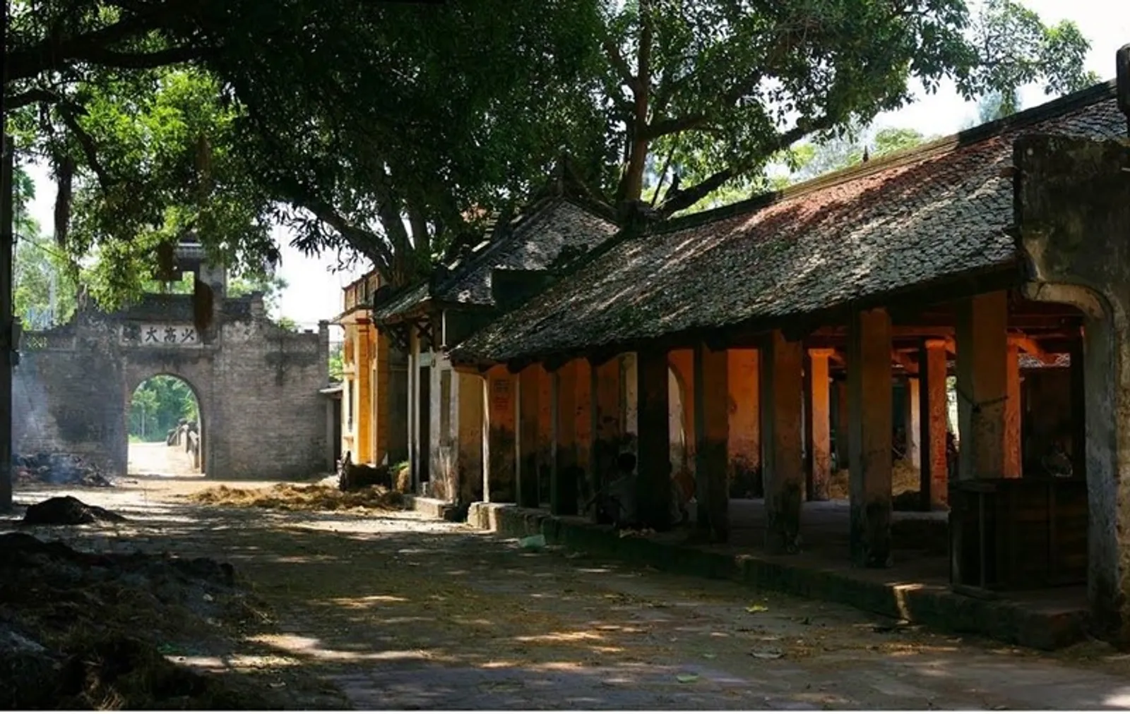 Along paths in the village are many ancient architectural works. The gate, houses and market with the ancient architecture still remain as the most obvious proof of the glorious history of this land. The shade of ancient trees covers the small shrine before the village entrance, creating familiar and idyllic features. On the village gate is the wood board with the script “My Tuc Kha Phong” (good traditions) which was 4 letters from King Tu Duc. Historically, in the middle of the village, there is a stockpile of grain self-sufficiency, called the fund “Nghia Thuong”. The village sent people to look after, to help poor people in villages and straitened people. King Tu Duc went through to know pretty customs and awarded these 4 letters. It means good customs are awarded.